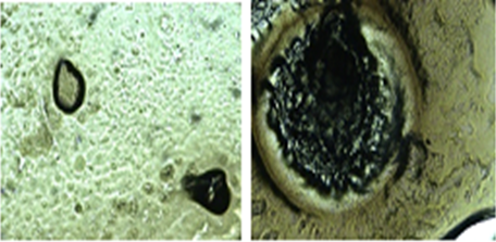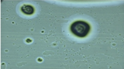 The images of deep frozen entrapped L. casei cells captured under the microscope are shown in fig. 11 at different magnifications (20X and 40X). It is evident that the cells are present in the bead even under freezing condition.