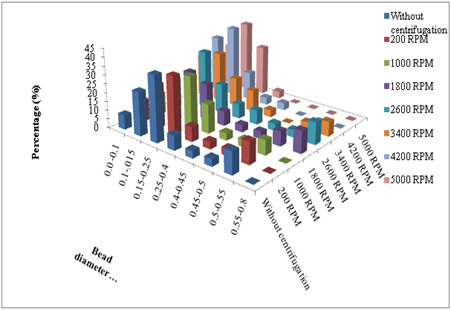 After centrifugation at different centrifugal speed, new sets of the bead size were found and the results are shown in fig. 9. The data are provided in table 3.