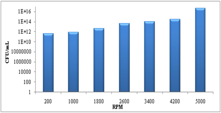 Fig. 10: Bar plot of different CFU/ml versus different centrifugal force (200rpm–5000rpm)