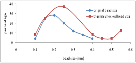 Fig. 13: Graph of reduction in bead size after thermal shock