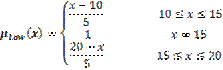 For calculating the membership function (MF) we scale the range of 0-100 and based on the severity we calculate the MF and the range are given as follows:
