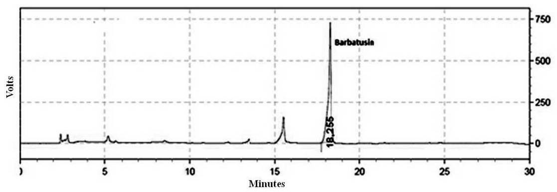 Fig. 2: Representative chromatogram (HPLC-UV-VIS) of the standard solution (barbatusin)