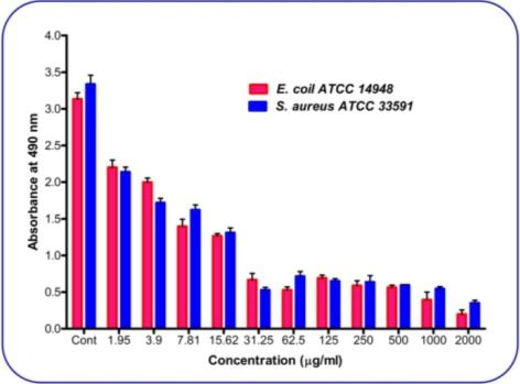 The synthesized zirconia nanoparticles were evaluated for inhibition of biofilm formation against both Gram positive and Gram negative bacterial strains such as S. aureus (ATCC 33591)(Gram positive) and E. coli (ATCC 14948) (Gram negative) was obtained from Microbial Biotechnology Laboratory, Department of Biotechnology, Sant Gadge Baba Amravati University, Amravati.