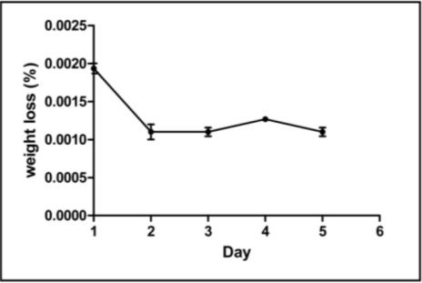 Fig. 8 shows that degradation of ZrO2 nanomaterials was 0.0021% for five weeks which is very negligible. It means that a zirconia nanomaterial does not show any degradation and stable at physiological condition in PBS solution.