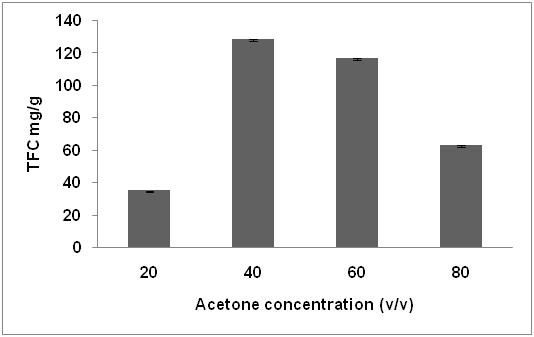 Effect of acetone concentration on extraction of TFC