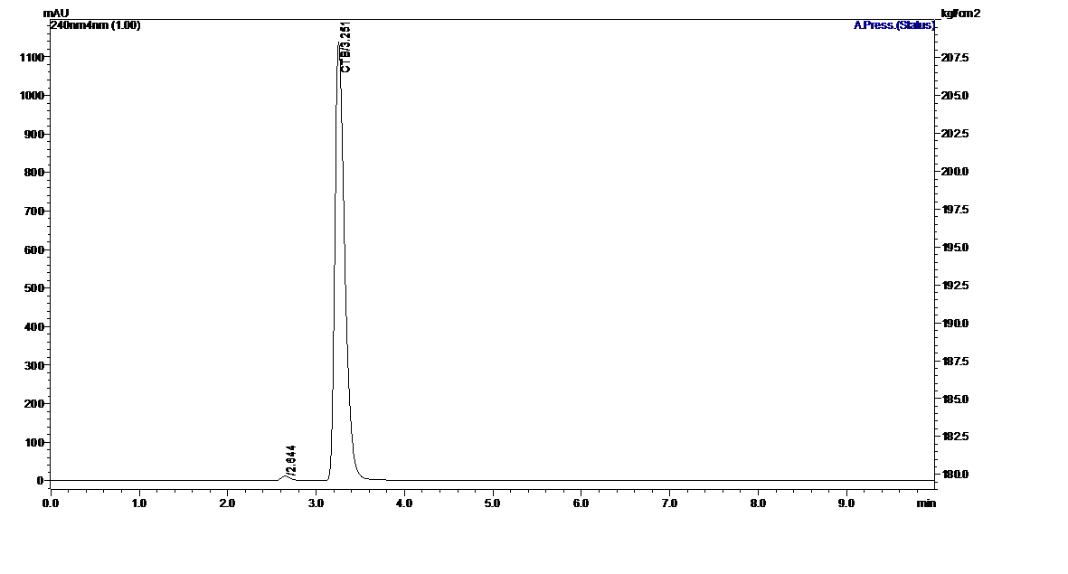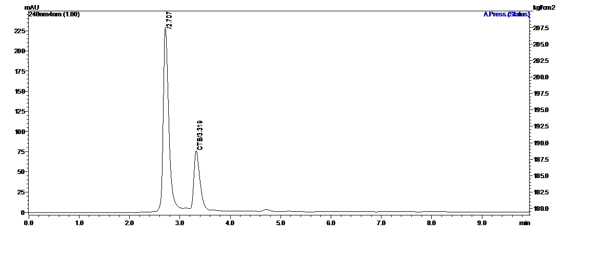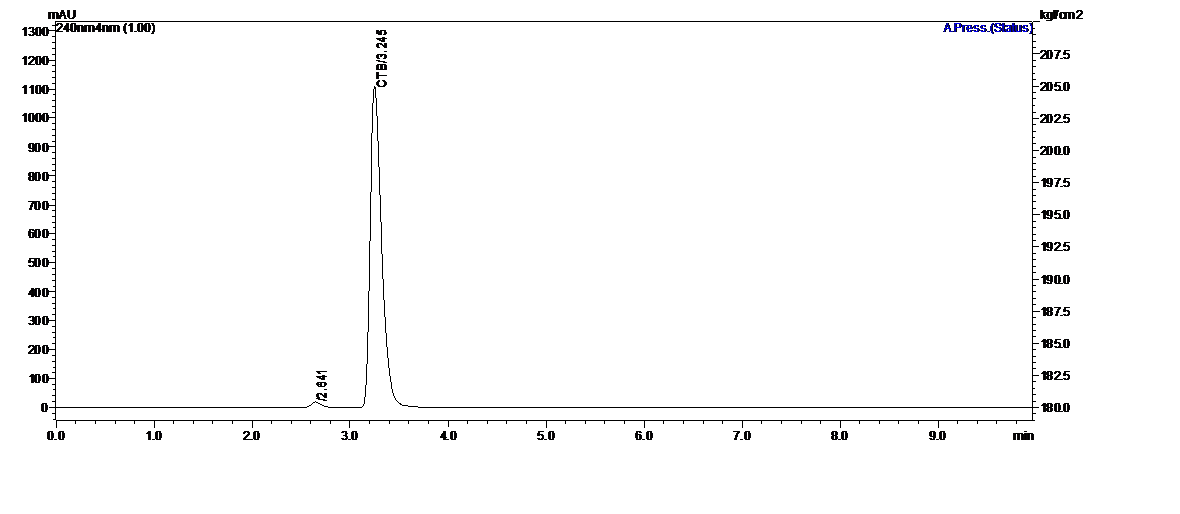 CTB stock solution (1000 μg/ml) was prepared by dissolving 25 mg of CTB in mobile phase in a 25 ml volumetric flask. Working solutions were prepared from the stock solution with mobile phase, and all the solutions were filtered through 0.45 μm membrane.