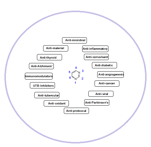 Pyrimidines represent a broad class of compounds, which have received considerable attention due to their wide range of biological activities such as anti-inflammatory, COX inhibitor, anti-cancer, anti-allergic, analgesic etc. [3]. Given below is a brief account related to various biological activities of pyrimidine derivatives.