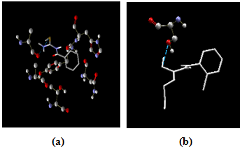 Fig. 2: Docking result of (a) Benzoylthiourea and (b) 1-allyl-3-(2-chlorobenzoyl) thiourea on COX-2 receptor