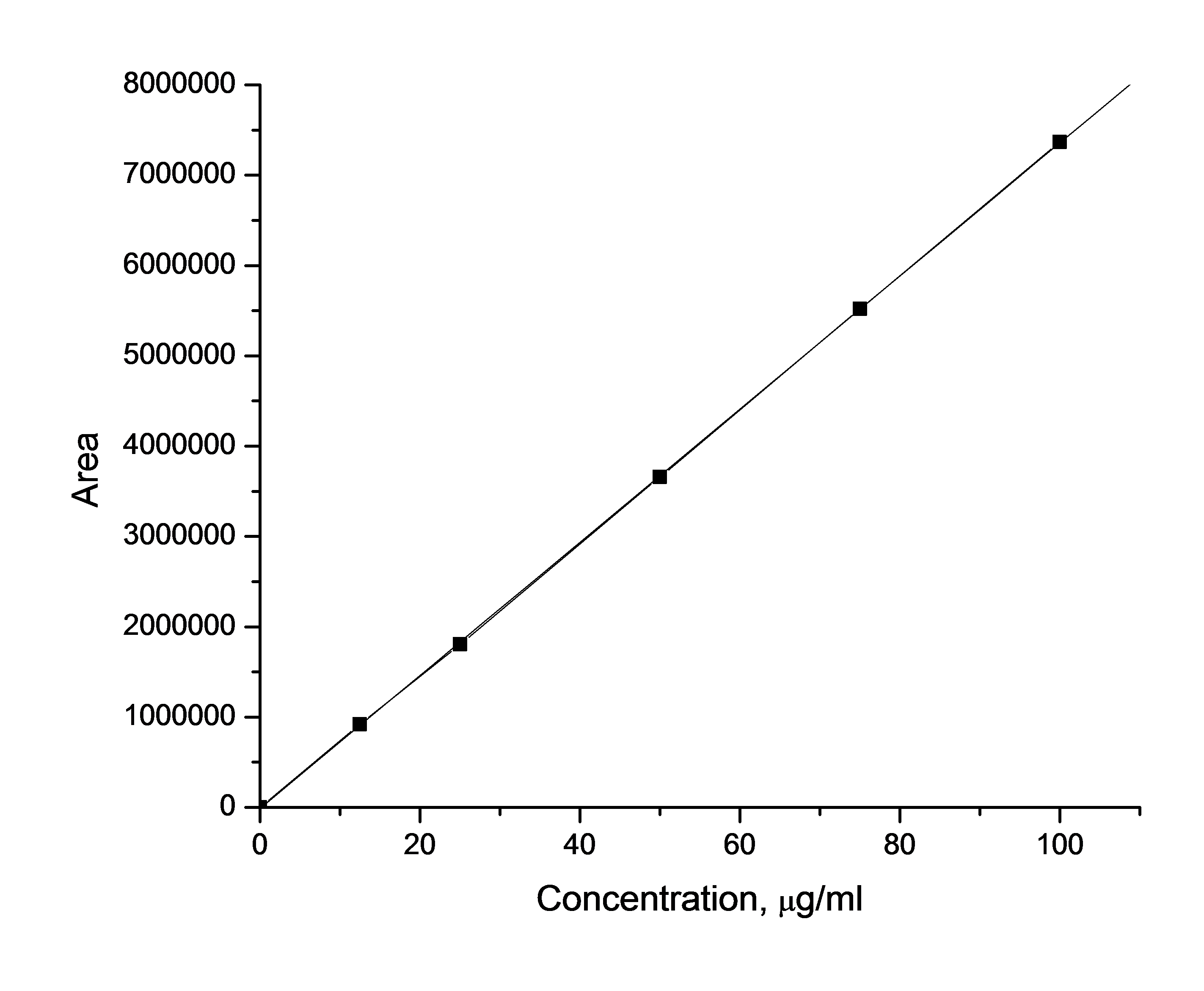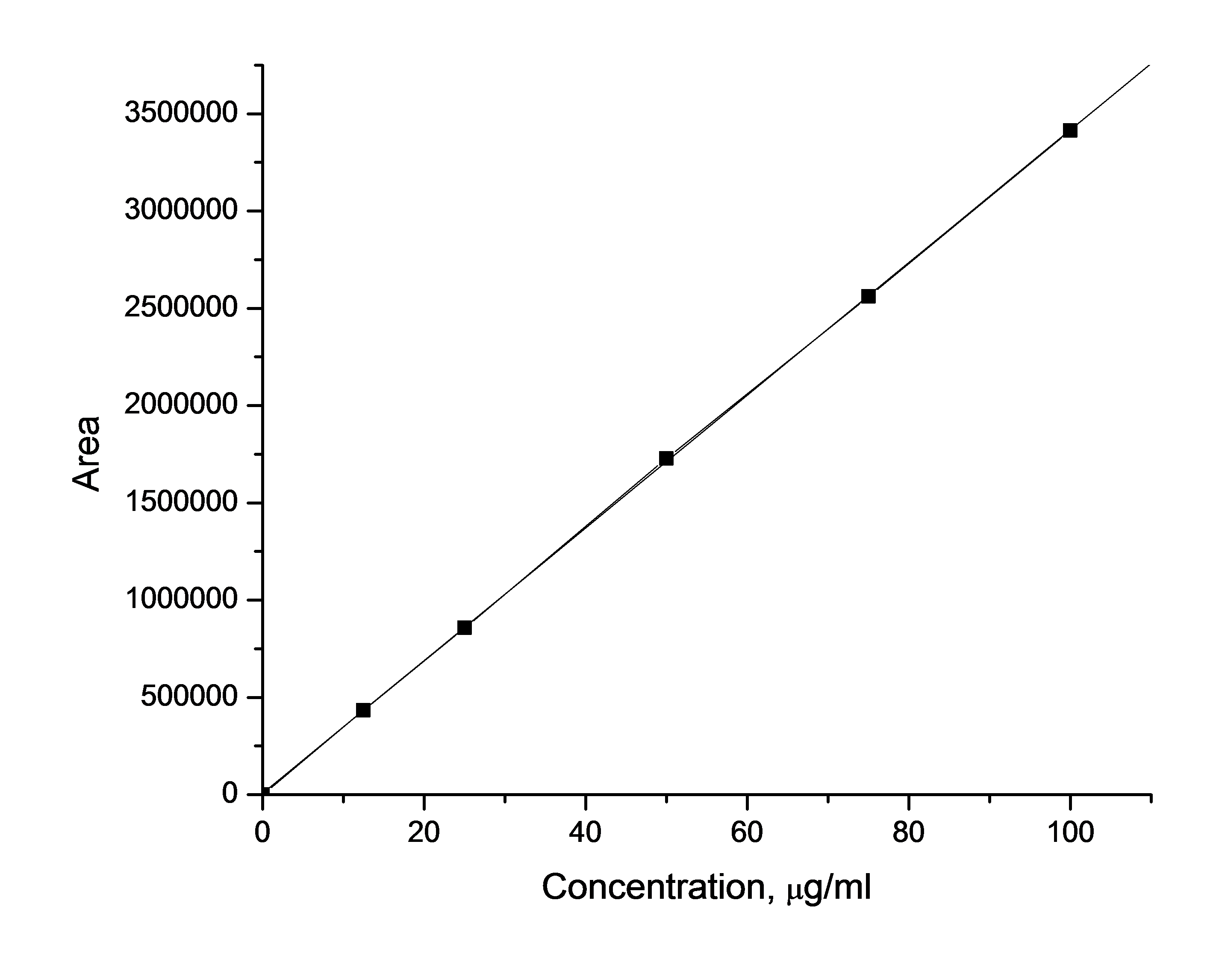 The five concentrations of each compound were subjected to regression analysis to calculate the calibration equation and correlation coefficients. The results obtained are shown in the tables 1-2. The described method was linear for the two analytes in the range specified above with a correlation coefficients better than 0.999.