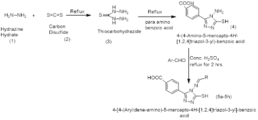 Synthesis of 4-[4-(arylidene amino-5-mercapto-4H-[1, 2, 4] triazol-3-yl]-benzoic acid 5(a-h)