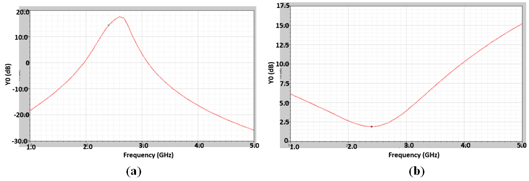 As seen fig. 5 (b), based on the PSS simulation, the conversion gain VS RF power at 2.4 GHz is 14.6 dB. Also, NF is 15dB while the power consumption is 8.2 mW.