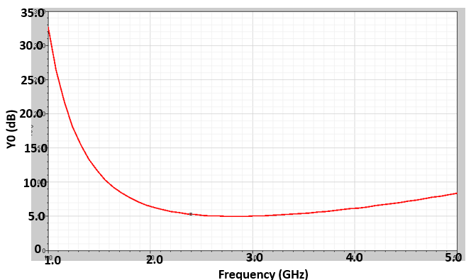 As seen in fig.4, the frequency is at 2.4 GHz the S11 is less than-10 dB. Kf is larger than 1 for all frequencies from 1 to 5 GHz, so this circuit is totally stable.