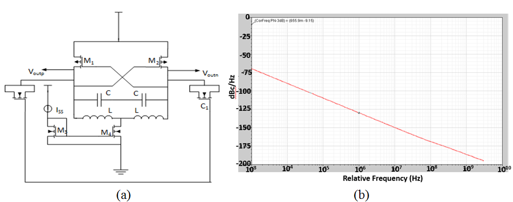 Fig. 6: (a) 2.4 GHz VCO schematic (b) VCO phase noise
