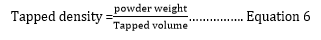 Where ρ is the mass density of the particle (tapped density), ρa is the unit density (1g/cm3) and dg is the cumulative geometric volume mean diameter [30, 31]. For density determination, a certain weight of each SDP was introduced into a small volumetric cylinder; the cylinder was tapped several times (about 50 times) on a solid surface till constant volume and the new volume occupied by the powder was recorded (tapped volume). Tapped density was calculated as shown in equation 6.