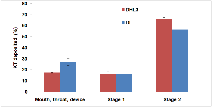 Fig. 3: in vitro pulmonary deposition of KT spray dried formulae using TSI