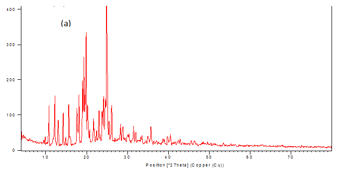 XRPD was used to determine the presence of crystalline and amorphous content in the selected SDP formulations. X-ray diffractometer (Philips, Guildford, UK) running at 45 kV, 30 mA, and at scanning angles of 5-45ᵒ was used to analyze the samples.