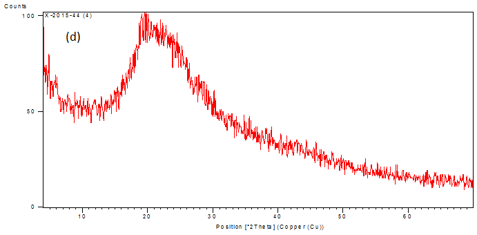 Examination of the diffractogram of formula DHL3 revealed that it exhibited none of the drug sharp crystal peaks as shown in fig. 5(d) and indicating drug amorphization within the polymeric matrix.