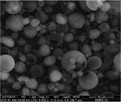 SEM images of DHL3, shown in fig.7, reveal non-aggregated collapsed MPs with dented surfaces. The observed PS was in accordance with the results obtained with laser diffraction data. The presence of leucine prevented fusion and sintering between adjacent MPs [48]. Also, no drug crystals could be seen in the micrographs of HA microspheres.