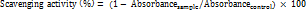 2, 2-Diphenyl-1-picryl hydrazyl (DPPH) is a stable free radical that gets scavenged by hydrogen atom present in extracts. This estimation was done by the method adopted by Blois [19], with some modification. Briefly, 100 µl of extracts (20-100 µg/ml) were mixed with 1 ml of the methanolic solution of 0.1 mM DPPH. Mixtures were shaken well and incubated for 30 min at room temperature and absorbance was recorded at 517 nm in a spectrophotometer. Ascorbic acid was used as the standard. Percent inhibition was calculated using the following formula: