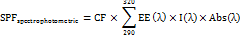 Where EE (λ) = erythemal effect spectrum; I (λ) = solar intensity spectrum; Abs (λ) = absorbance of sunscreen product; CF = correction factor (=10). The values of EE x I are constant.