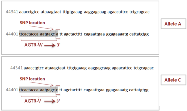 Fig. 2: Schematic illustration of the A1166C SNP in the AGTR1 gene