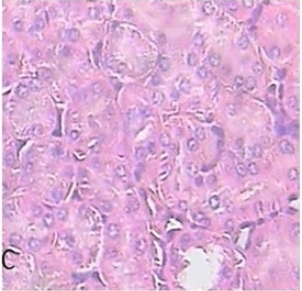 Fig. 3: Light photomicrograph of sectional kidney histology from mice treated with Ni only and those treated with vitamin C/E in combination with Ni (H&E. X 40)