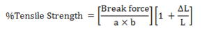 Procedure used for tensile strength is same as used in elongation determination and tensile strength was calculated by using Equation mention below