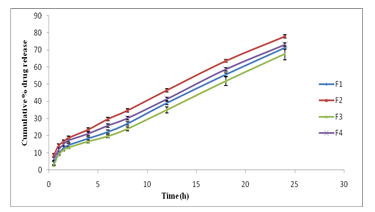 No difference was observed in the release profile of each F2 Formulation indicating that the fabrication process employed was reliable and reproducible. Further, there was no change in the physical appearance of different formulations at the end of 28 d storage period at accelerated conditions.