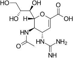 The chemical name of zanamivir (ZMV) is 5-(acetylamino)-4-[(amino imino methyl)-amino]-2,6-anhydro-3,4,5-trideoxy-D-glycero-D-galacto-non-2-enonic acid. It has a molecular formula of C12H20N4O7 and a molecular weight of 332.3[1, 2] as shown in fig. 1. The proposed mechanism of action of zanamivir is via inhibition of influenza virus neuraminidase with the possibility of alteration of virus particle aggregation and release [3, 4]. Mechanism of action has on viral neuraminidase catalyzes cleavages of terminal sialic acid residues attached to glycoprotein and glycolipids, a process necessary for release of virus from host cell surfaces [5].