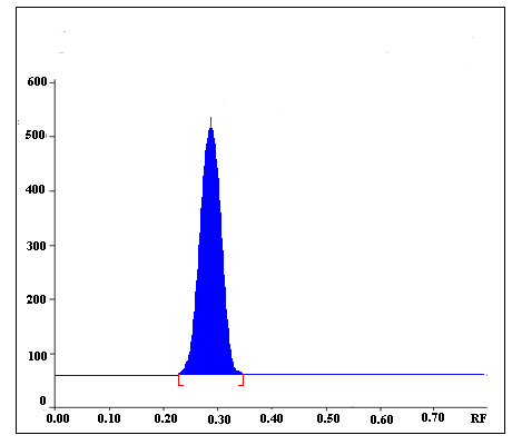 Fig. 2: Densitogram of standard ZMV (Rf=0.29)