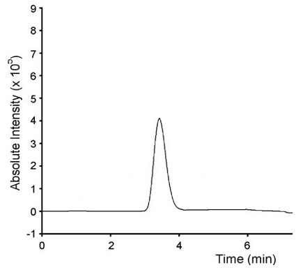 The method is quite selective. There was no other interfering peak around the retention time of ZMV; also the baseline did not show any significant noise.