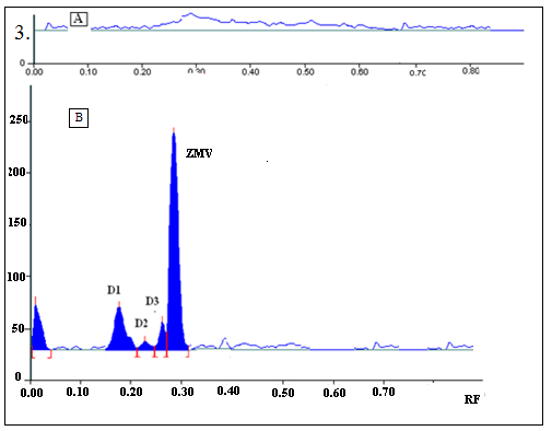 The ruggedness of the proposed method was studied by two different analysts using the same experimental and environmental conditions. The spots 1000 ng/band of ZMV was applied on TLC plates. This procedure was repeated in triplicates.