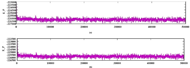 Fig. 6: Illustrating potential energy plot of MD simulation run for 50 ns. (a) Energy plot of the MKK4-ZINC06091752 system. (b) Energy plot of MKK4-ZINCC00391412 system