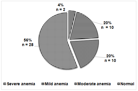 Compared with the study [2] which showed an incidence of 15.38% of mild and 12.3% of moderate anaemia, our study showed 22% patients had mild and moderate anemia and 2% had severe anemia.