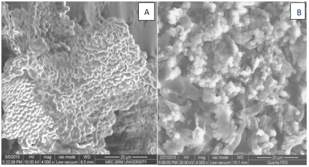 Fig. 3: SEM Micrographs of untreated (A) and treated (B) samples