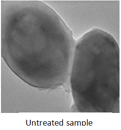 Fig. 4: TEM analysis of Candida parapsilosis with untreated and treated sample