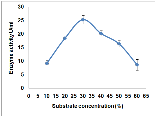 Fig. 4: Effect of substrate concentration on cellulase production by bacteria on water hyacinth substrate