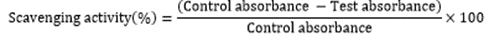 | S. No. | Concentration (µg/ml) | % Scavenging |