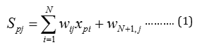 The major complication in training the neural network is to minimize the prediction error which can be achieved by obtaining a set of weights so as the difference between predicted outputs by the network and the desired outputs can be minimized. For the prediction of the new input condition, the network identifies the patterns in data by the process of iterative training and generates an internal model. There are n-dimensional vector xp,and a unit bias as input to the network. To have the activation state Spj, in each input weight wijis multiplied and the products are summed which is given below in equation 1.
