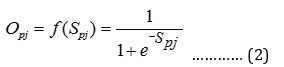 The output of the hidden layer neuron Opj for sigmoid function is calculated as: