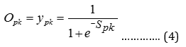 Where f represents the differentiable and non-decreasing function. Same calculation as mentioned above was performed by output layer of a single hidden layer network except that the input vector xpis replaced by the hidden layer output Op and the corresponding weights wjk:
