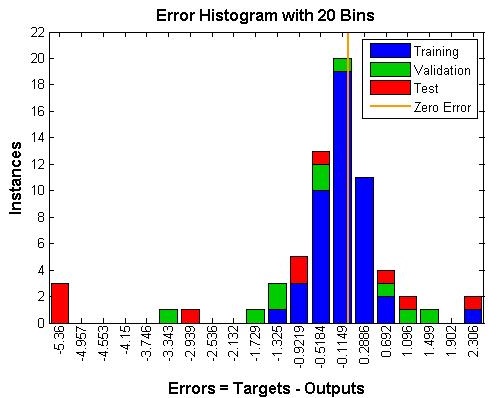 Fig. 6: Error histogram generated after ANN modeling representing the instances Vs errors