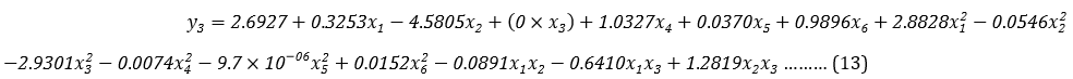 The final step in regression modeling was to incorporate linear interaction terms along with linear and quadratic terms to obtain a better value of R2 to establish a greater correlation between input and output parameters [10, 11].