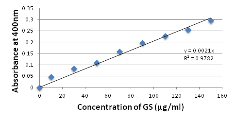 Fig. 1: Calibration curve between absorbance versus concentration of GS.