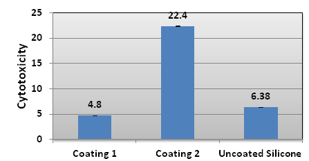 Fig. 6: Cytotoxicity of coated and uncoated silicone pieces (P=0.0009)