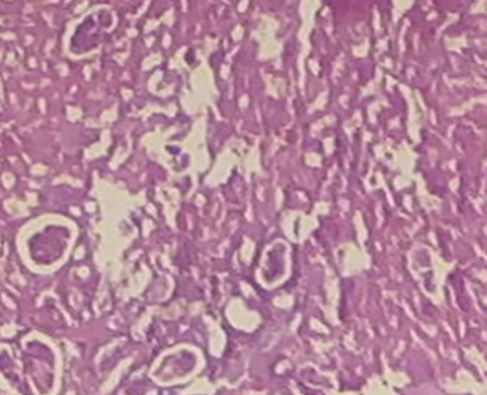 CIS-induced nephrotoxicity was clearly observed through significant elevation of LDH, CPK, and urea levels in CIS treated mice compared with normal which significantly (p<0.001) diminished the elevated levels and maintained close to normal when NJ and DNG administered respectively with CIS (fig. 1). This may be attributed to noni components which may stabilize kidney cells and prevent the release of serum biomarkers to the extracellular fluid. Concerning the histopathological changes the kidney damage produced by CIS (5.0 mg/kg b. wt. i. p.) to mice caused the extent of renal tissue with predominant congested tubular foci, admixed with glomerular distortion foci of necrosis and thickened blood vessels (fig. 3; B) which are significantly reduced by co-administration of NJ and DNG respectively with CIS (fig. 3; E and F).