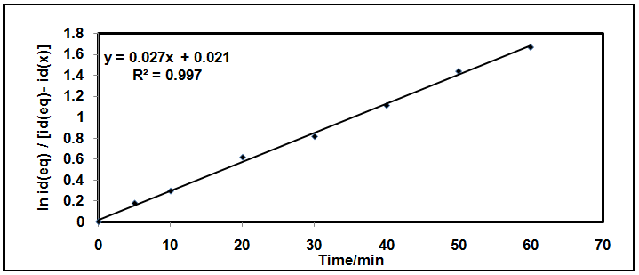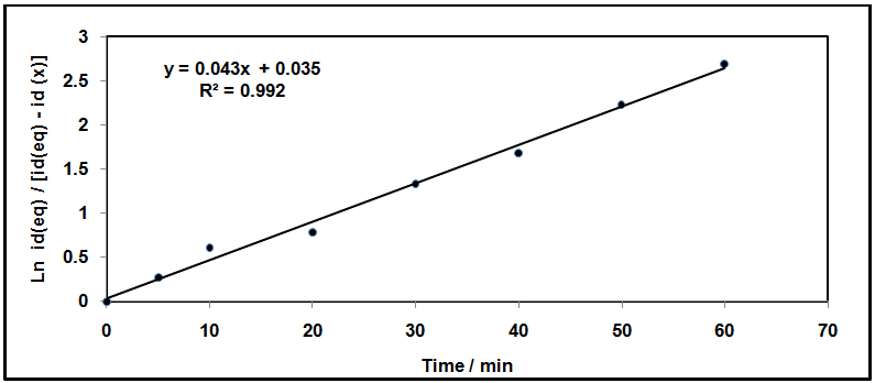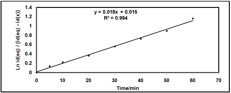 So, by plotting Ln [id (eq)/id (eq)–id(x) ] against t and calculate the value of slope which equal to k1+k-1 we could calculate the rate