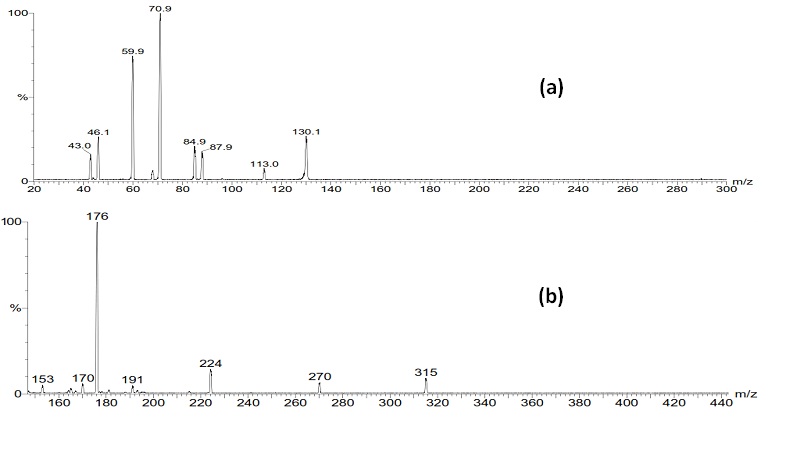 The method had fulfilled the requirement of analysis with the use of MRM transitions130.1>70.9 and 315.02>176.15 for MET and IS, respectively as shown in fig. 3.