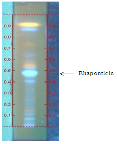 Fig. 1: Thin Layer Chromatography of rhaponticin in Kelemabak root extract.