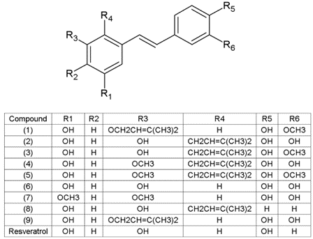 Fig. 1: Chemical structures of stilbenoids isolated from Kangaroo Island propolis
